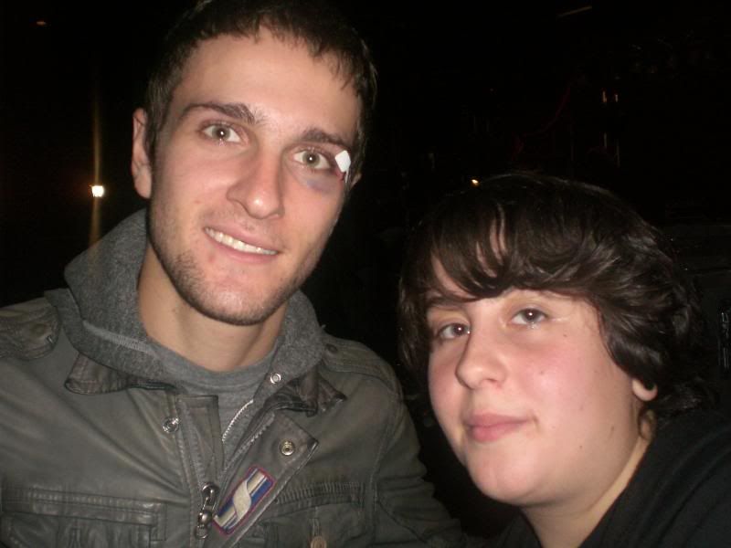 Finally after the show when he came back again I went and talked to him and it was fine, I functioned and talked and didn't make a complete fool of myself. I got a picture with him and told him how security had already yelled at me. He told me how he got yelled at for walking in the wrong door earlier..and we concluded that the security guard who yelled at him is the same security guard who yelled at me. Then he told me in January they are touring with Cobra Starship (which I think I knew but somehow forgot) cus I kind of freaked and was like uh okay that just made my life now I must go tell Annie. Then I said bye and gave him a hug and walked away to find Annie. After finding Katelyn and Jenelle we got pictures with Matt from MCS and we talked to Blake again and I told him he would definitely see me at multiple dates for the Cobra tour. Jenelle wanted a picture with Trace so we went back over to him which was great because more interaction with him is always a good thing. After getting pictures with everyone (I was kind of bummed I didn't get a picture with Mason but whatever) we went out to where the buses were parked to get pictures with Justin. But after we waiting a few minutes we decided just to leave and we walked back to the car and Annie's dad picked her and Jenelle up there.